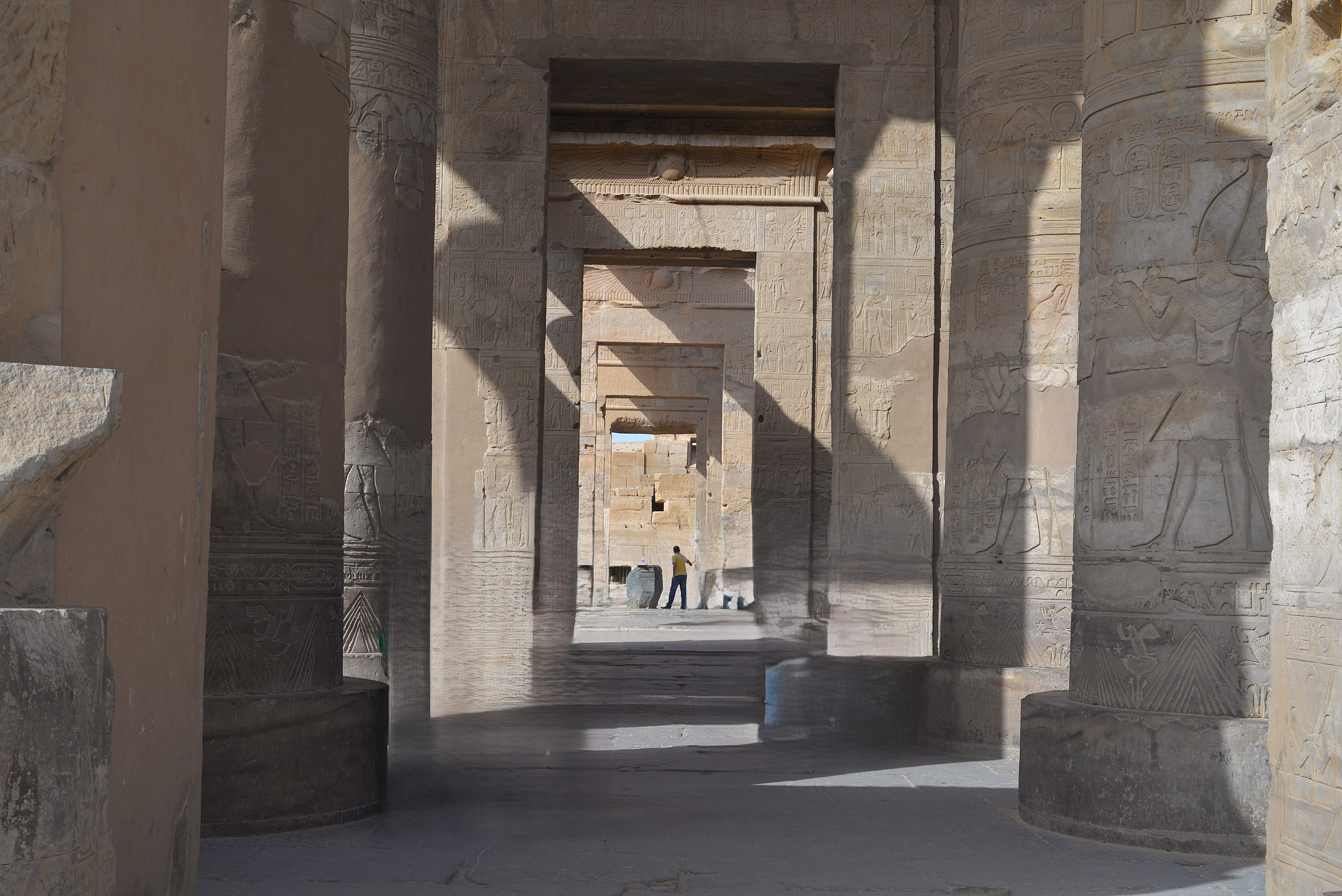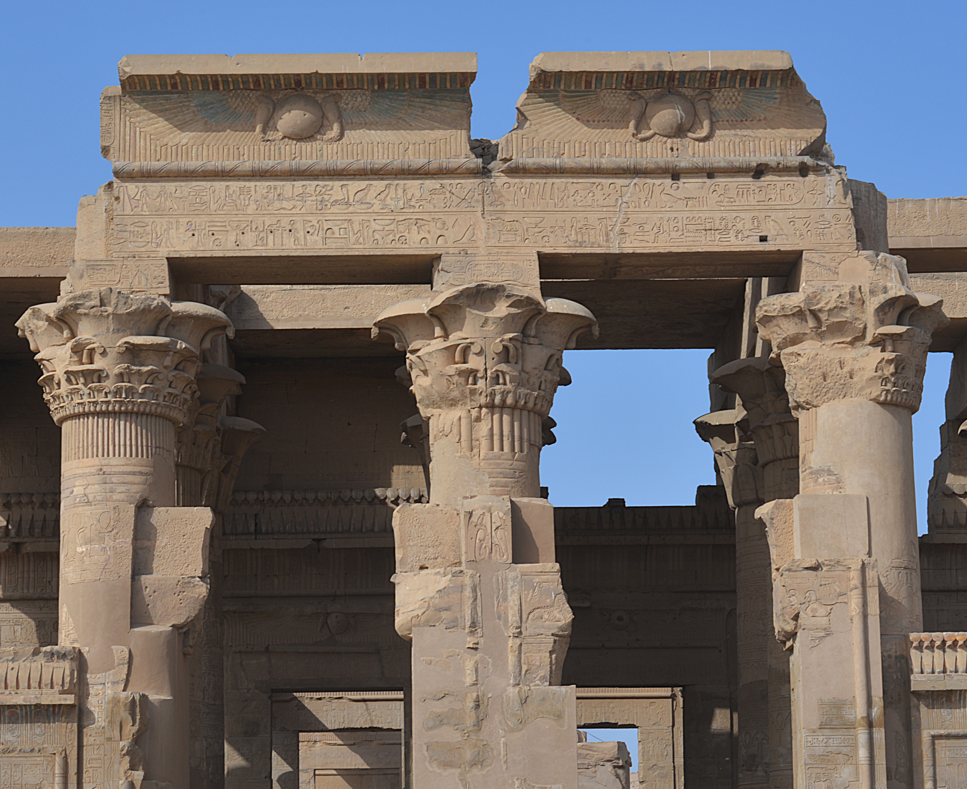 Il tempio di Kom Ombo è stato costruito durante il periodo tolemaico (108-47 a.C.) ed è dedicato a due divinità, Sobek, il dio coccodrillo e Horus il vecchio, il dio falco del cielo, ed è perciò un duplice santuario, simmetrico secondo l’asse longitudinale.