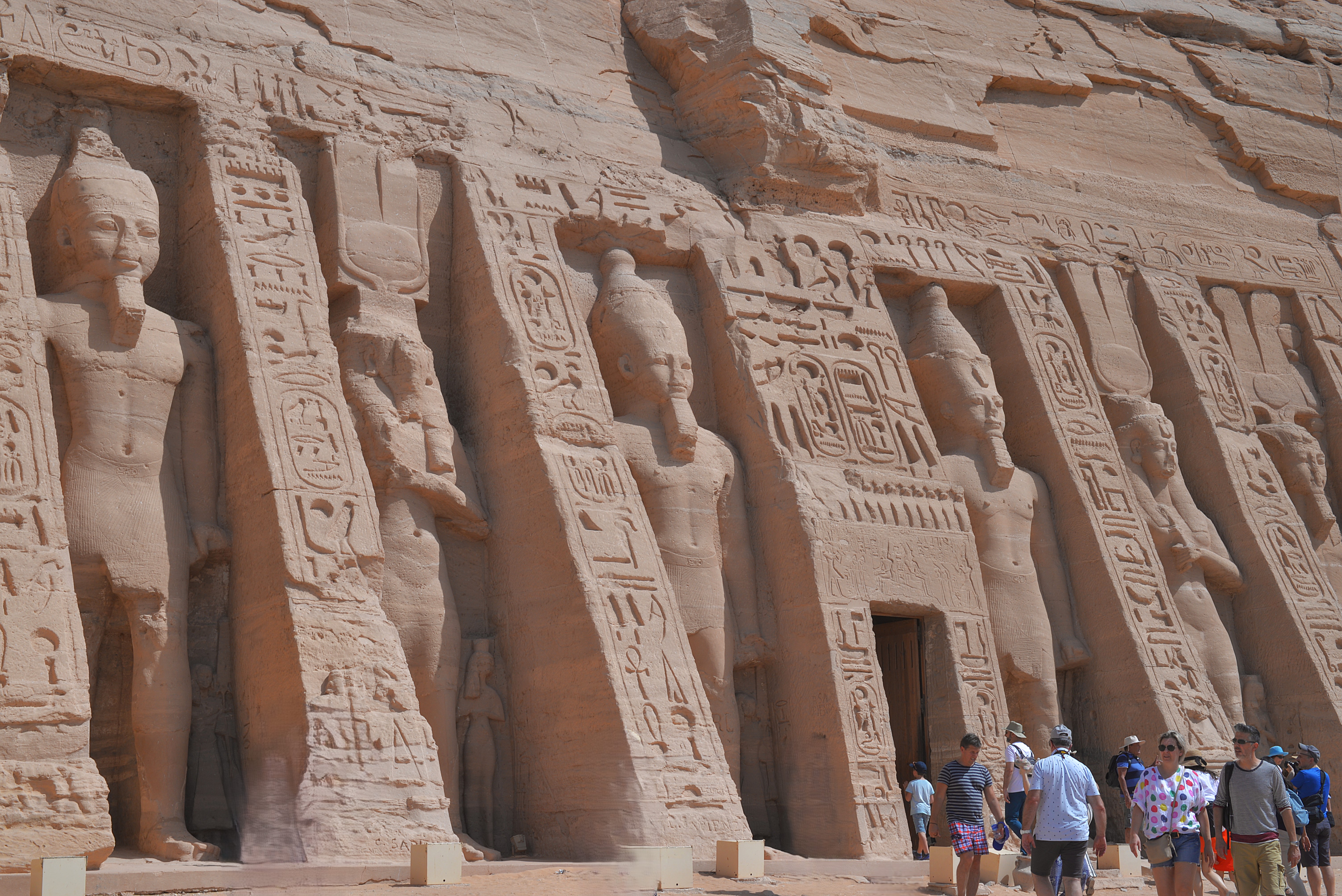 Anche questo è stato scavato nella roccia, la facciata raffigura la dea Hathor con Ramses II e l’amata moglie Nefertari, in onore della quale il tempio è stato realizzato ed è la prima volta in cui una regina viene posta alla pari del sovrano.