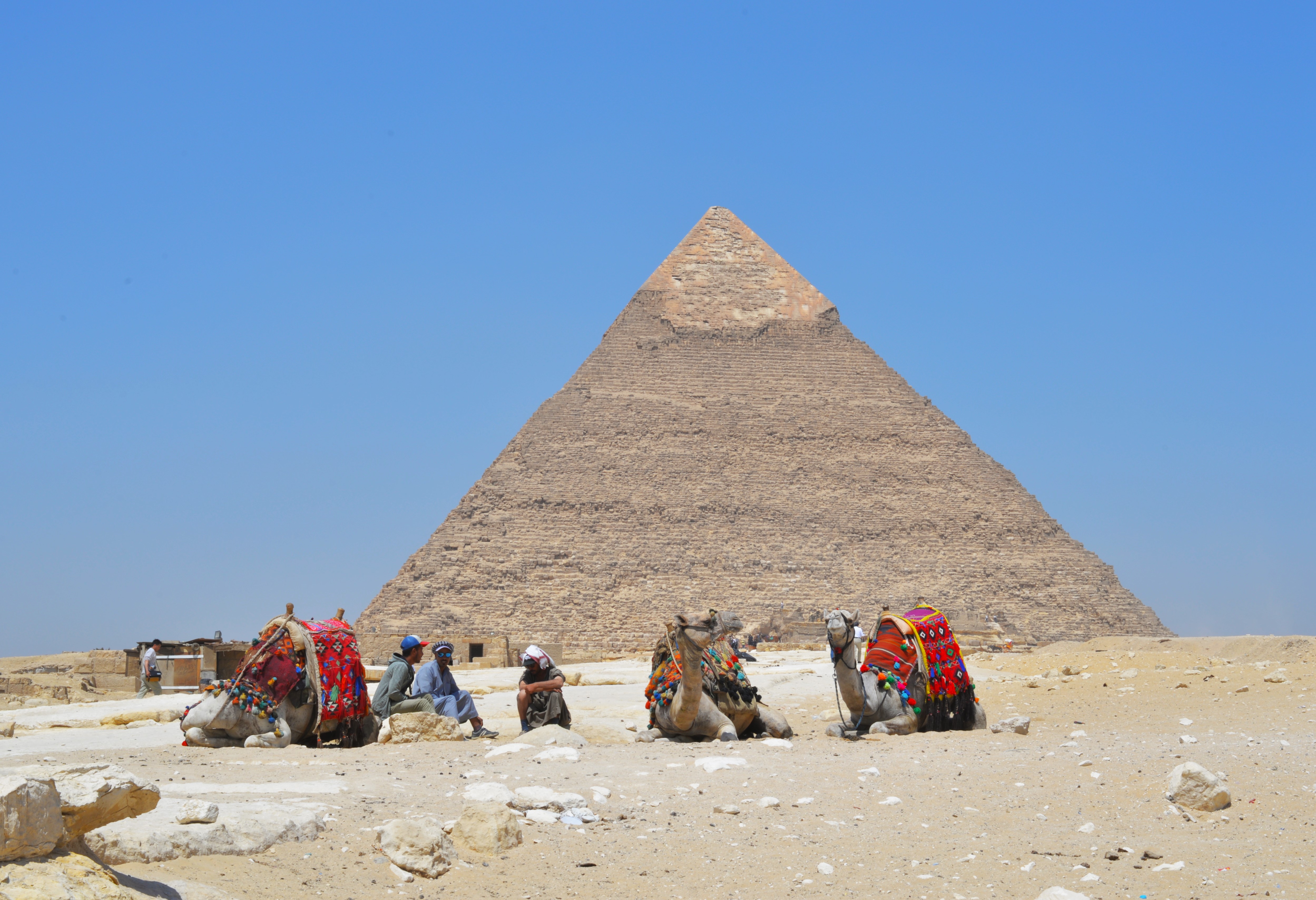 Le piramidi della necropoli di Giza sono il simbolo dell’Egitto faraonico e l’unica delle Sette Meraviglie del Mondo Antico ancora visibile; sono le tombe dei faraoni Cheope, Chefren e Micerino, rispettivamente padre, figlio e nipote.