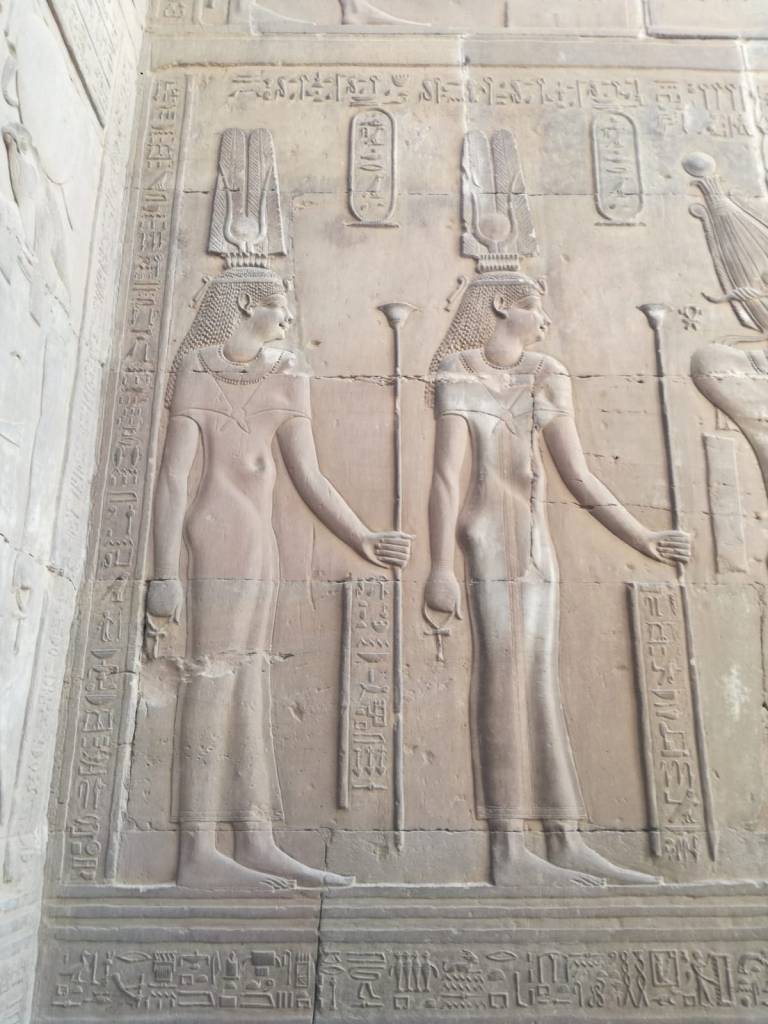 Pare che all’interno del tempio vi sia una delle poche raffigurazioni della celebre Cleopatra, figlia di Tolomeo XII, suo padre, che ha contribuito all’ampliamento del tempio.