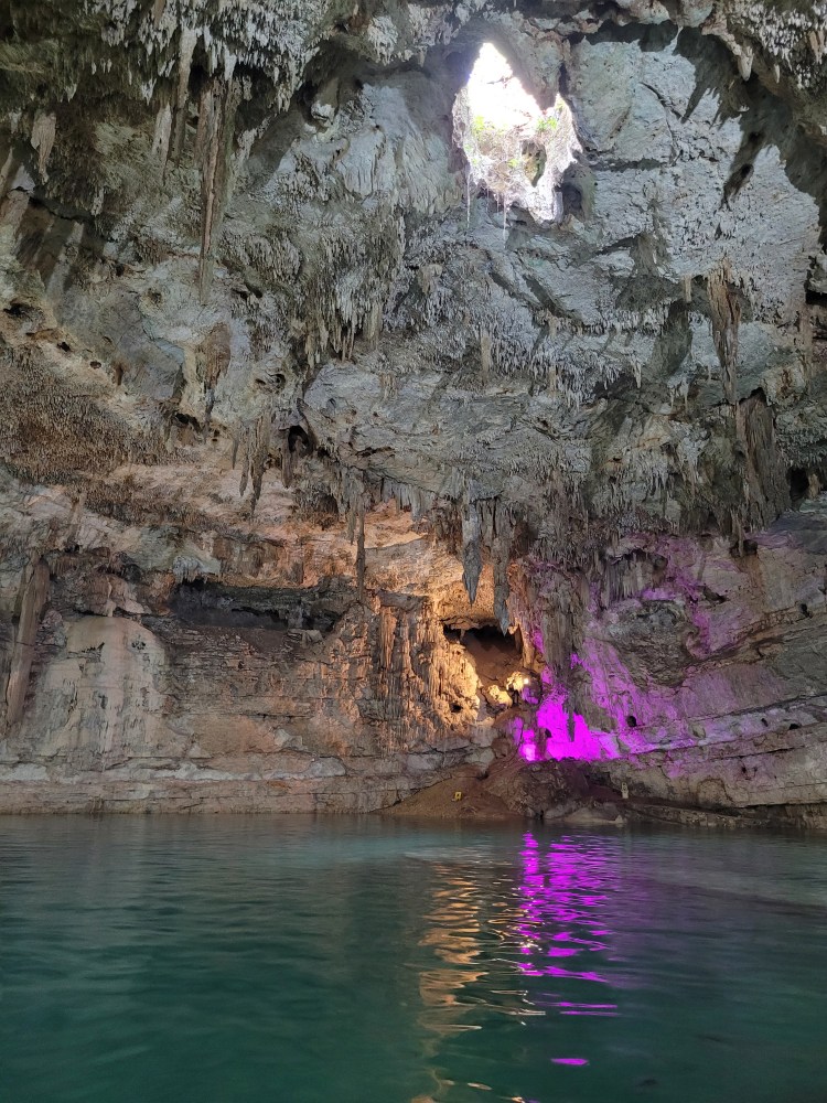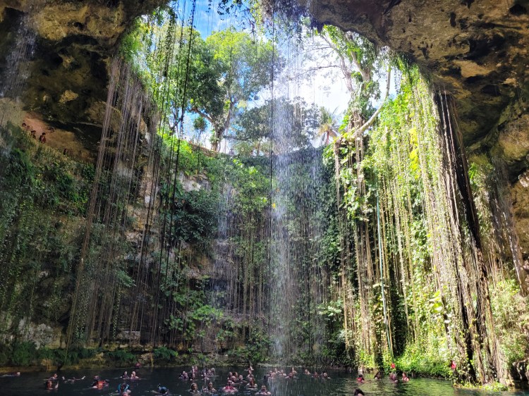 Dopo la visita a Tulum, ci siamo spostate verso il cenote Yum-Ha, un vero rifugio naturale. I cenote, dal termine maya dzonot (“abisso”), erano considerati porte per l’Xibalbá, il mondo sotterraneo degli dei, oltre che preziose fonti d’acqua dolce.