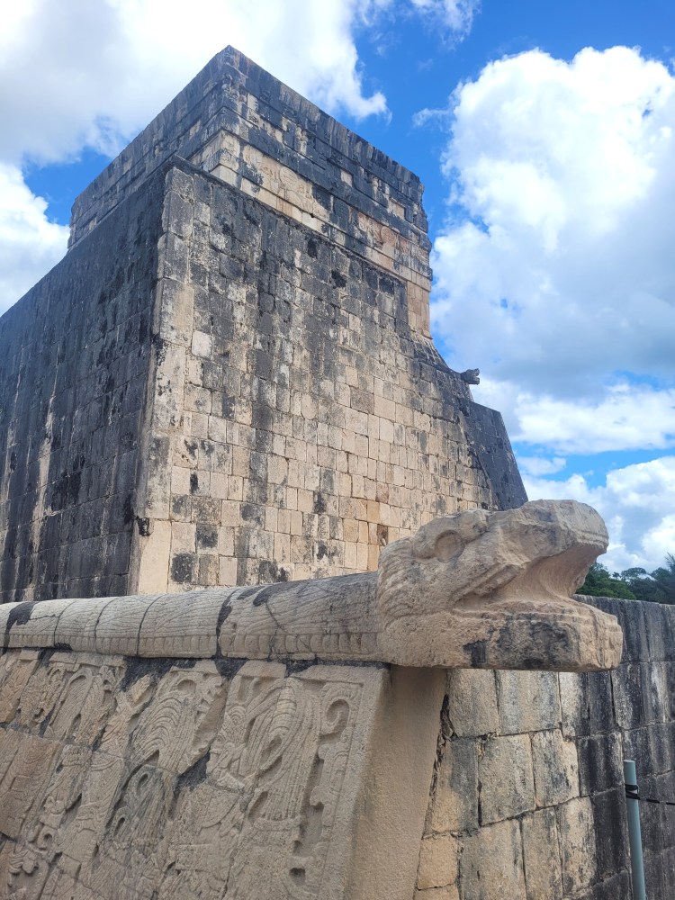 Il simbolo del sito è la Piramide di Kukulkán (El Castillo), capolavoro di ingegneria e astronomia. Durante gli equinozi di primavera e autunno, il gioco di luci e ombre crea l’illusione di un serpente piumato che scende lungo la scalinata nord: Kukulkán era una delle principali divinità della mitologia maya, legata alla fertilità, al vento e alla rinascita.
