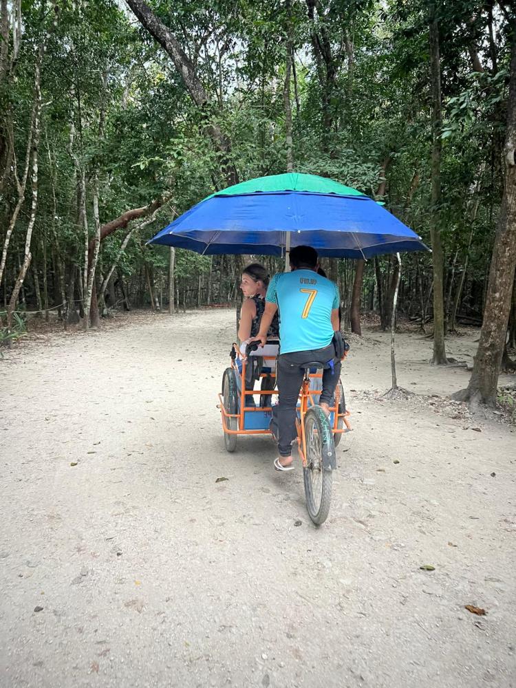 Uno dei momenti più divertenti è stata l’uscita in bicicletta verso le spiagge, il mezzo ideale per muoversi a Tulum. Le distanze però non sono brevissime e, complice il caldo, il tragitto si è rivelato più faticoso del previsto, ma anche estremamente piacevole. Pedalare tra palme e strade immerse nel verde è stata un’esperienza che ha reso il tutto ancora più autentico.